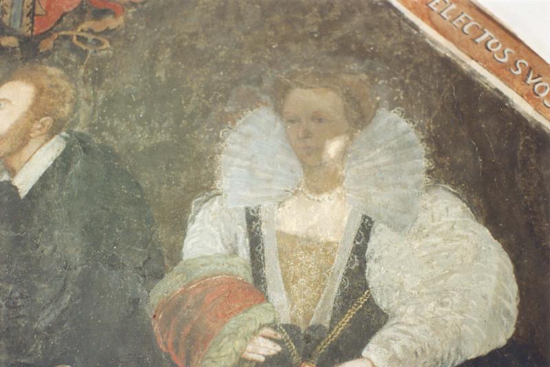 peintures murales : le paradis et l'enfer, portrait de l'épouse de Claude Du Verdier, détail