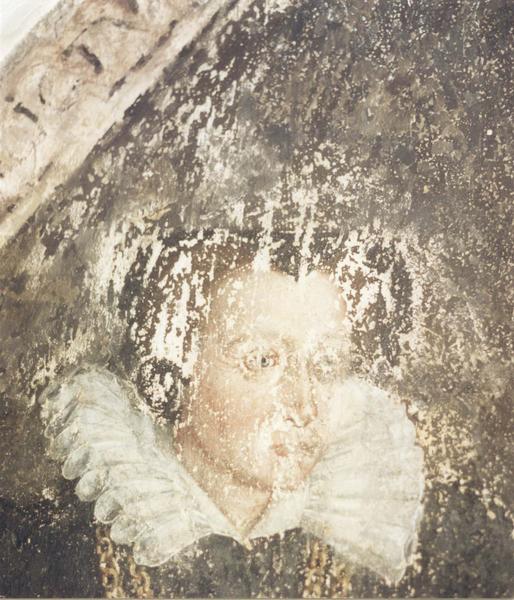 peintures murales : le paradis et l'enfer, portrait de l'épouse d'Antoine Du Verdier, détail
