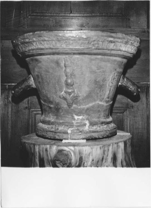 Photographie fournie par le conservateur des antiquités et des objets d'art. Photographie conservée dans les armoires du service de la documentation des objets mobiliers.