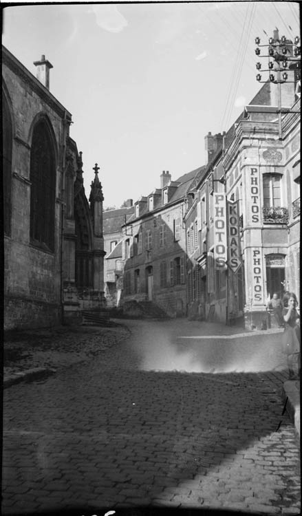 Vue partielle de la façade ; façades sur rue, enseigne « Photos Kodaks »