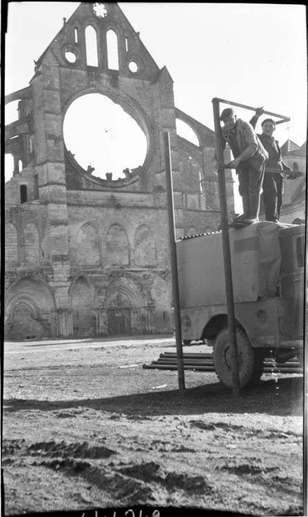 POP | Plateforme ouverte du patrimoineMur occidental ; ouvriers sur un camion bâché montant un échafaudage