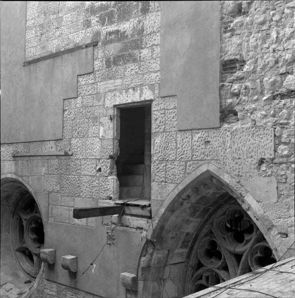 POP | Plateforme ouverte du patrimoineVue partielle d'une façade en cours de restauration ; baies à remplage