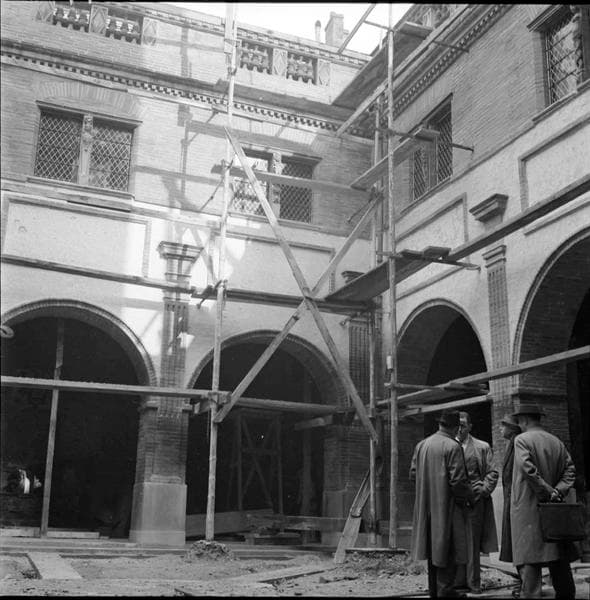 Petit cloître échafaudé ; visite de chantier