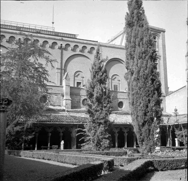 Galerie du grand cloître flanquant la façade latérale de l'église