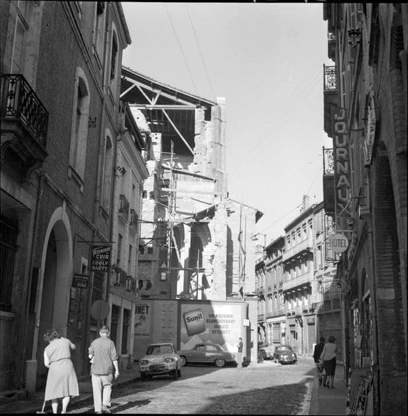 POP | Plateforme ouverte du patrimoineAbords : vue partielle de la façade ouest échafaudée et rue adjacente