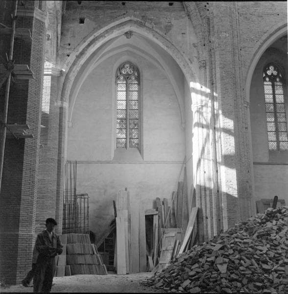 Intérieur : arcade du bas-côté en travaux