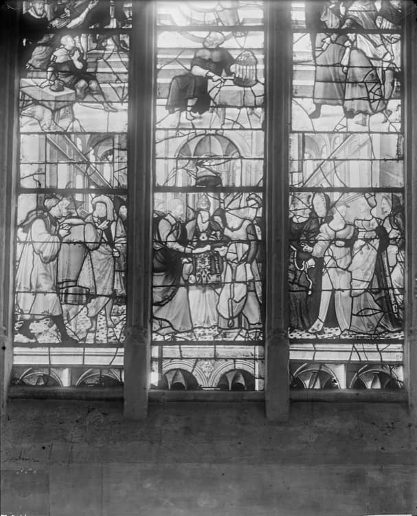 Verrière n°28 : Vie de la Vierge, partie basse