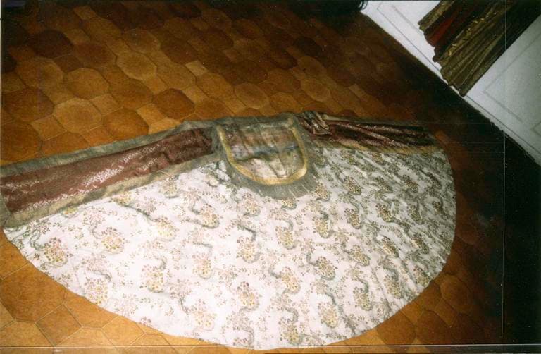 POP | Plateforme ouverte du patrimoinechape, soie blanche et brochée, 18e-19e siècle, vue de dessus
