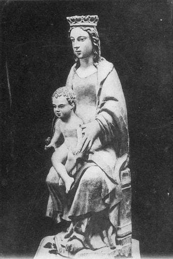 statue : Vierge à l'Enfant, bois polychrome, 16e siècle, vue par la droite