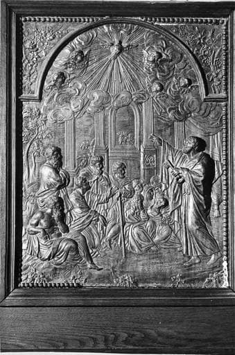 panneau de la chaire : La Conversion des gentils, bois, 18e siècle