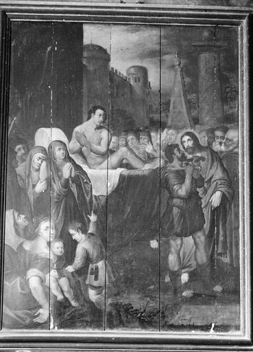 tableau : La Guérison du paralytique, panneau peint, 17e siècle