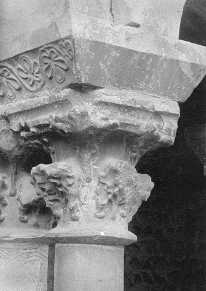 Cloître, intérieur : galerie nord, troisième travée depuis l'est, chapiteau orné de motifs végétaux