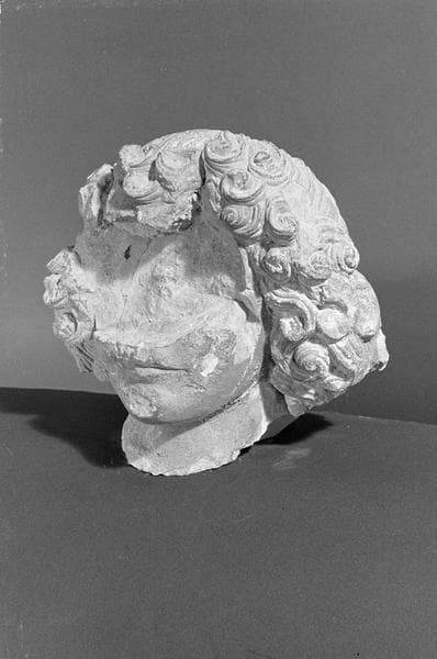 POP | Plateforme ouverte du patrimoineStatue en pierre de Courville, fragment : tête de jeune homme, sans visage, de trois quarts gauche