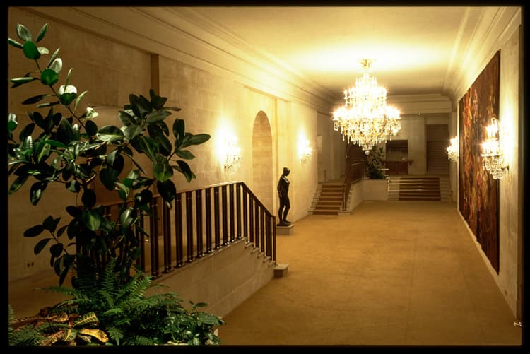 Foyer de la salle Médicis. Statue : Marie-Christine ou l'Espoir. Tapisserie : Galaxie