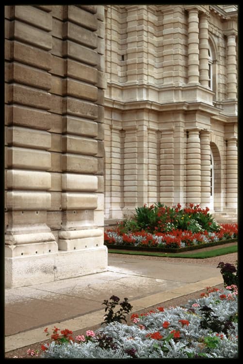 POP | Plateforme ouverte du patrimoineEntrée du pavillon central côté jardin, façade sud : parterre fleuri