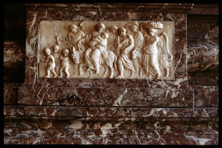 Grands appartements, le salon de Diane : bas-relief de cheminée : La Fuite en Égypte