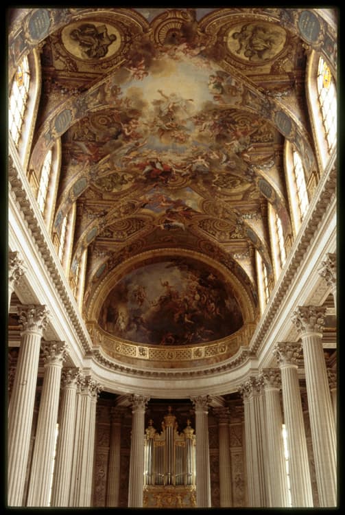 Chapelle royale : orgue et peinture du plafond : Dieu le Père dans sa gloire