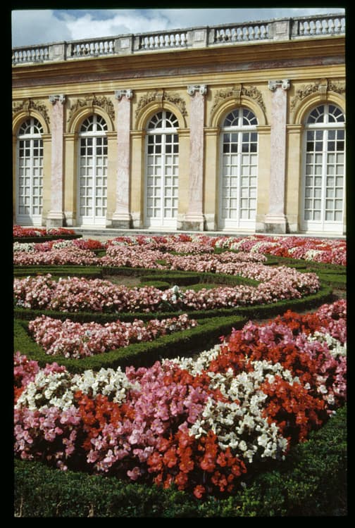 Grand Trianon : façade est et jardin du Roi ; Parterre fleuri