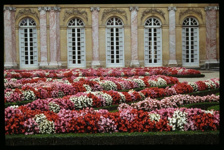 Grand Trianon : façade est et jardin du Roi et parterre fleuri