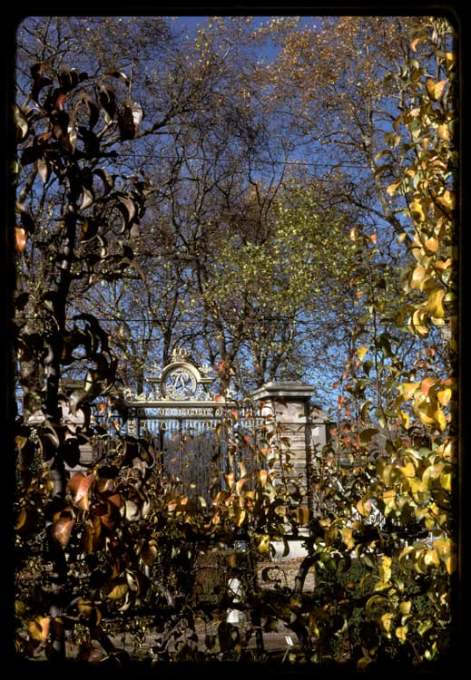 POP | Plateforme ouverte du patrimoineLe potager du Roi, l'automne : grille de la pièce d'eau des Suisses