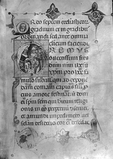 Pontifical à l'usage de la chapelle d'un pape : Page manuscrite avec lettrine