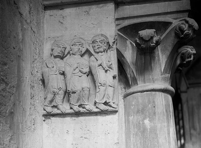 POP | Plateforme ouverte du patrimoineVue intérieure de la nef, côté sud : Bas-relief à gauche de la porte