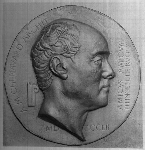 Médaillon sculpté en bas-relief : Chenavard, architecte