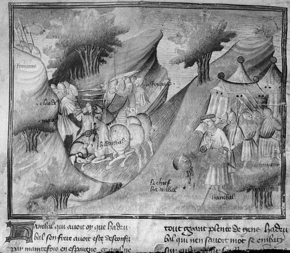 Manuel d'histoire de Philippe VI de Valois. Miniature : Asdrubal est vaincu par les Romains