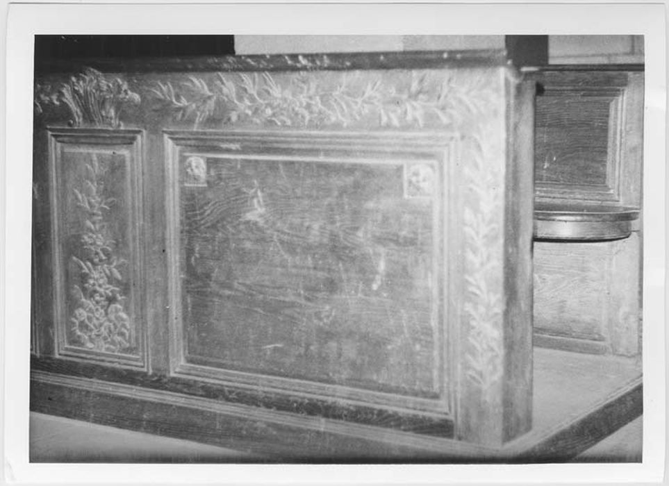 Photographie fournie par le conservateur des antiquités et des objets d'art. Photographie conservée dans les armoires du service de la documentation des objets mobiliers.
