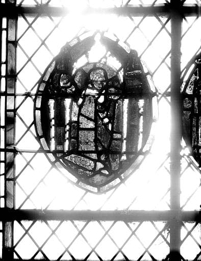 POP | Plateforme ouverte du patrimoineVitrail de la crypte : personnage agenouillé sous arcade à double colonnettes