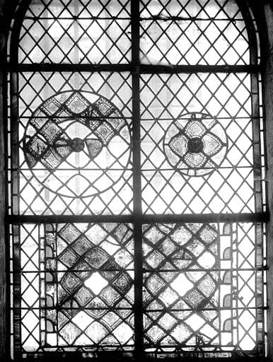Vitrail de la crypte : fragments de rosaces et de grisailles