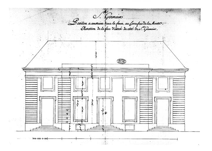 Plan, pavillon à construire dans la forest au carrefour de la Muette, élévation de la façade d'entrée du côté de Saint-Germain