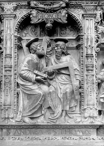 Tombeau des Cardinaux d'Amboise, entablement : statues de saint André et saint Thomas