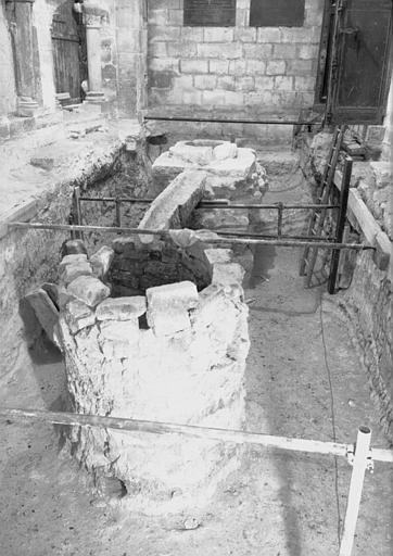POP | Plateforme ouverte du patrimoineCrypte carolingienne : ensemble du puisard, du déversoir et du puits, vers l'ouest