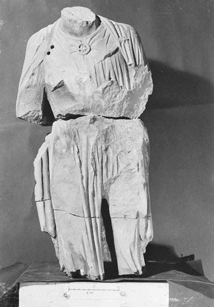 Jubé du 13e siècle, statue, fragment : personnage acéphale (en trois morceaux)