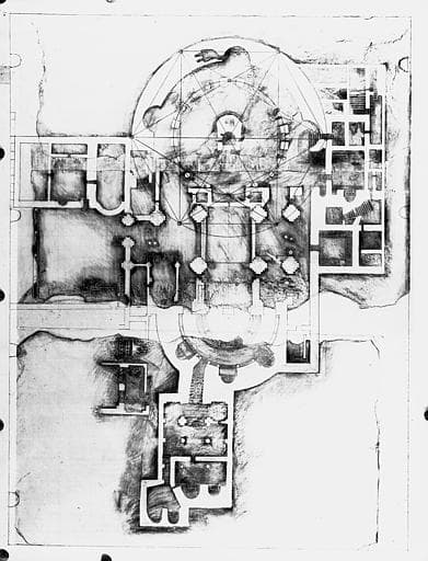 POP | Plateforme ouverte du patrimoineFrottis du plan découvert en septembre 1952 au revers du dallage de la basilique Saint-Denis représentant le Saint-Sépulcre de Jérusalem