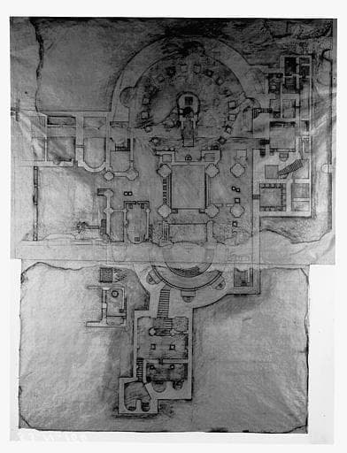 POP | Plateforme ouverte du patrimoineFrottis du plan du Saint-Sépulcre trouvé devant le portail nord en septembre 1952, d'après un relevé du révérend-père B. Amico