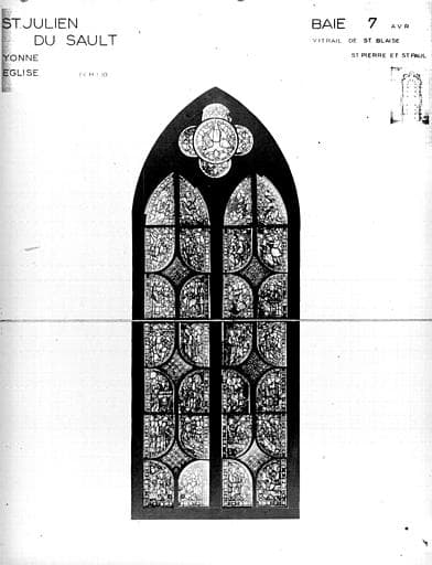 Photomontage de vitrail : baie 7, saint Blaise, saint Pierre, saint Paul, état avant restauration