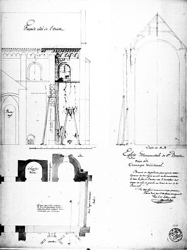 POP | Plateforme ouverte du patrimoineElévation de la façade ouest partie côté sud et plan du croisillon sud du transept