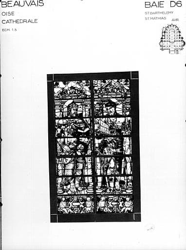 Photomontage de vitrail : baie D6, saint Barthelémy et saint Mathias, état avant restauration