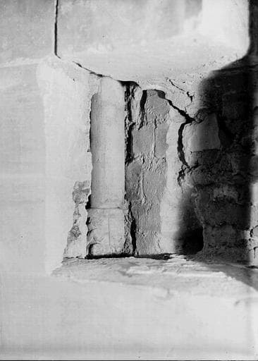 Crypte, chapelle de Hilduin : dégagement d'une colonnette et d'un parement à l'abside