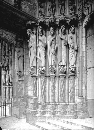 POP | Plateforme ouverte du patrimoinePortail du croisillon sud, porte centrale, ébrasement gauche : saint Matthieu, saint Philippe, saint Thomas, saint André, saint Pierre