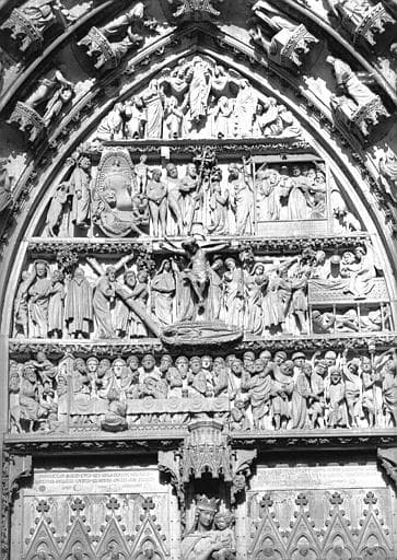 POP | Plateforme ouverte du patrimoineFaçade ouest, portail central, tympan : Scènes de la Passion et Ascension