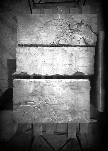 POP | Plateforme ouverte du patrimoinePlan du Sépulcre de Jérusalem retrouvé sous le dallage du croisillon nord de l'abbatiale, pierre sculptée