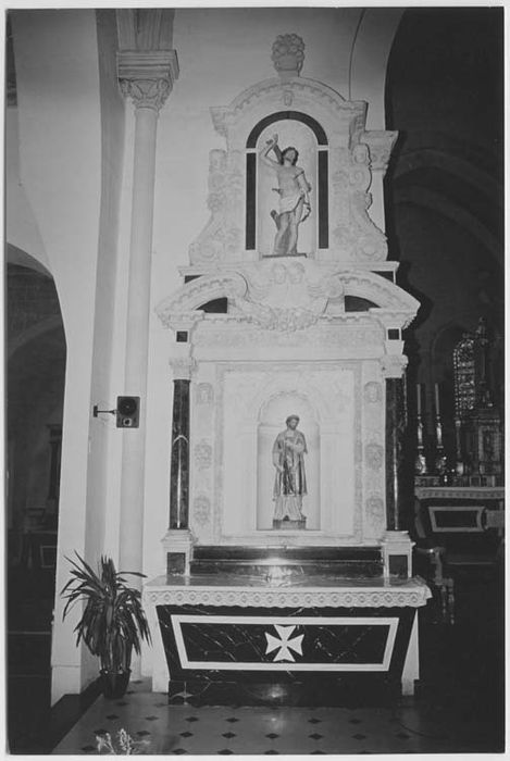 autel de Saint-Sébastien avec son retable et deux statues : Saint Sébastien et Saint Gervais