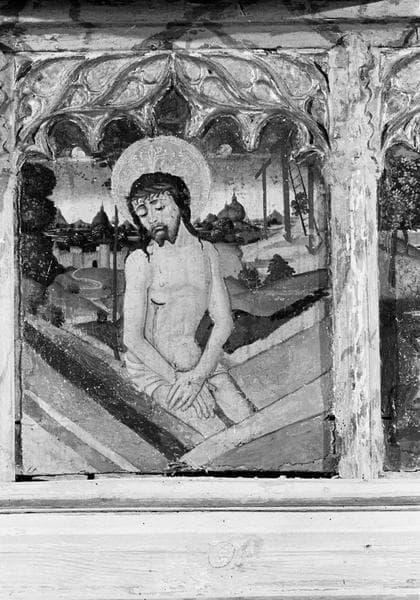 Retable de saint Martin, prédelle, troisième panneau : Christ sortant du tombeau