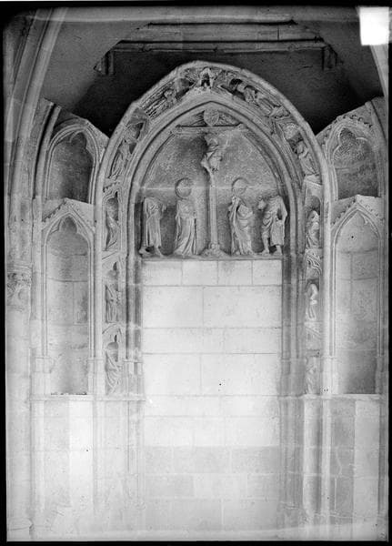 POP | Plateforme ouverte du patrimoineIntérieur : narthex, portail nord muré avec tympan représentant la Crucifixion