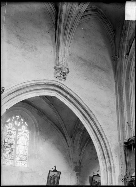 Intérieur : croisée du transept, côté sud, arc et cul-de-lampe