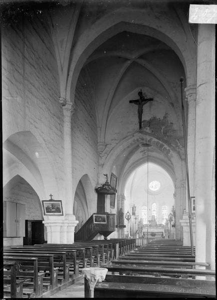 POP | Plateforme ouverte du patrimoineIntérieur : nef avec chaire à prêcher vers le choeur