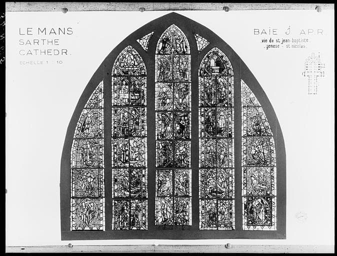 POP | Plateforme ouverte du patrimoinePhotomontage de vitrail : baie J, Scènes de la vie de Moïse, état après restauration